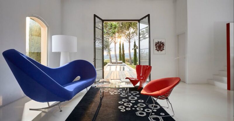 Here, every stay feels like a complete immersion: major works of art, iconic furniture, and outdoor installations harmonize with the timeless beauty of Provence. The hospitality, orchestrated by Olivier and Patrizia Massart, exudes a warm elegance, a far cry from the rigid conventions of a luxury hotel. We have lunch under a hundred-year-old plane tree, dine in front of a monumental fresco by Castelbajac, and fall asleep in a gallery-house open to the stars.