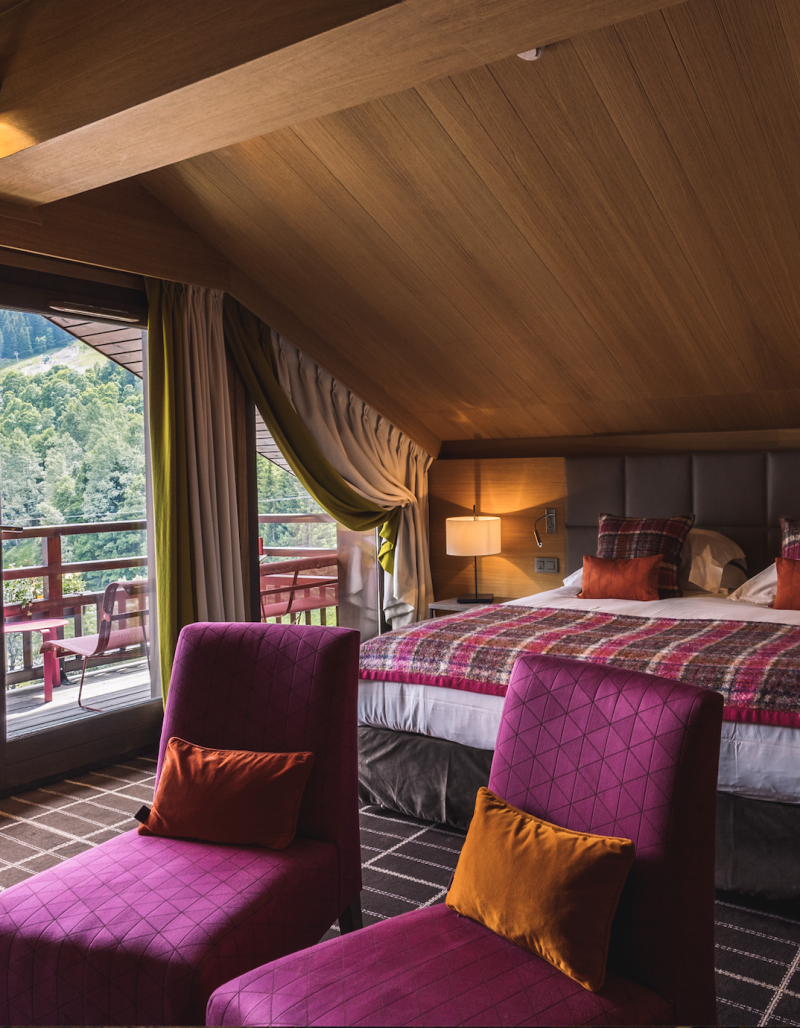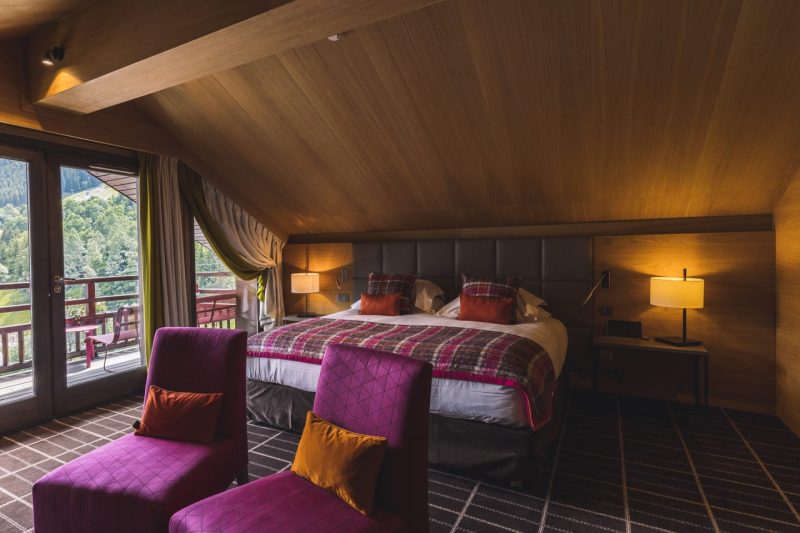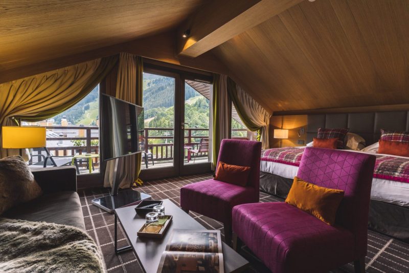 • The Honey Suite and its terrace overlooking the 3 Valleys, offering a panoramic view of the estate.