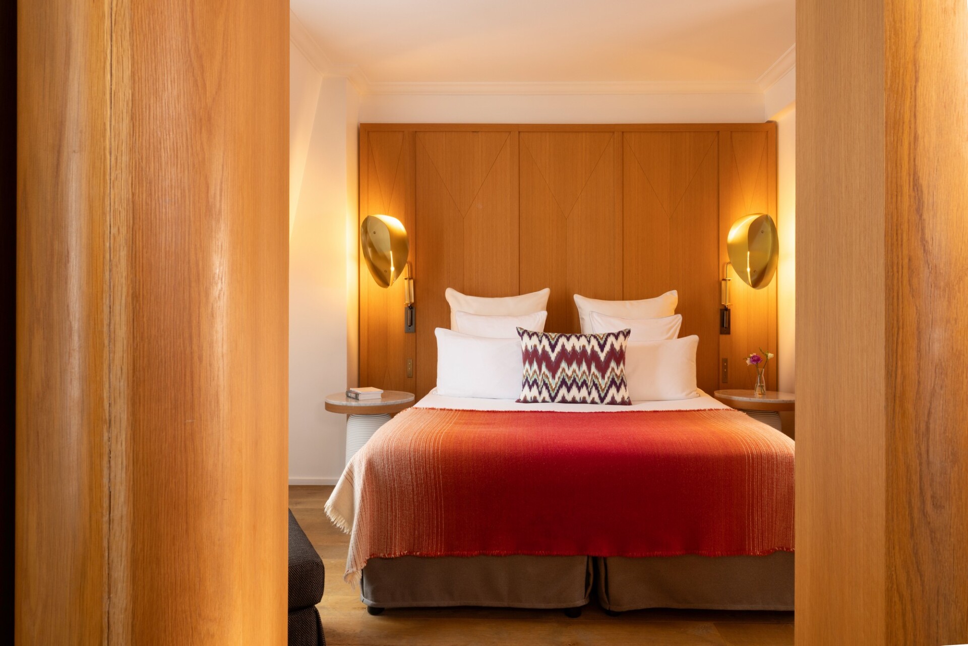 Point d’orgue du lieu : une verrière signée Gustave Eiffel, sous laquelle s’anime la vie de l’hôtel. Marbres d’origine, lignes épurées, œuvres contemporaines… l’ensemble compose une atmosphère à la fois intime et inspirée. Les 50 chambres et suites prolongent cette élégance feutrée. Bois de chêne, textiles raffinés, jeux de lumière : chaque détail a été pensé comme une signature. À l’abri de l’effervescence toute proche, on s’y sent immédiatement chez soi, version cinq étoiles.