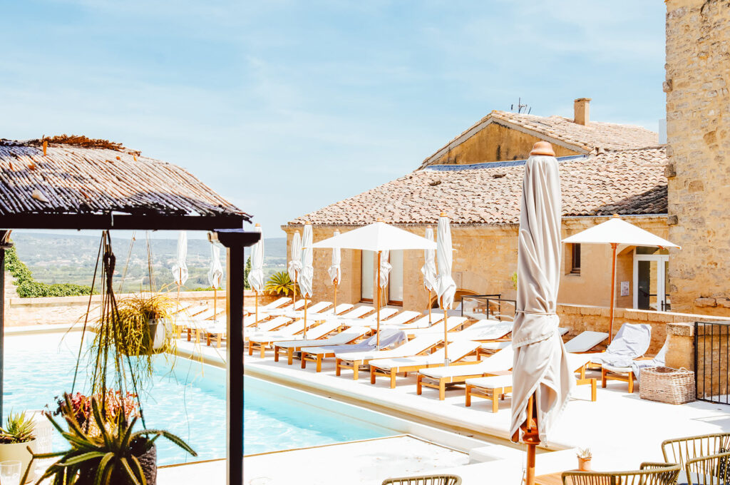 Au cœur du village perché de Castillon-du-Gard, Le Vieux Castillon occupe un ensemble unique de dix-huit maisons médiévales reliées entre elles par des passerelles, escaliers et patios baignés de soleil. À quelques minutes d’Uzès, l’adresse combine le charme brut de la pierre du Gard au confort contemporain. Les 34 chambres et suites déclinent une Provence sobre et élégante : tomettes anciennes, marbre, tons minéraux, terrasses ouvertes sur les toits du village ou les patios intérieurs…